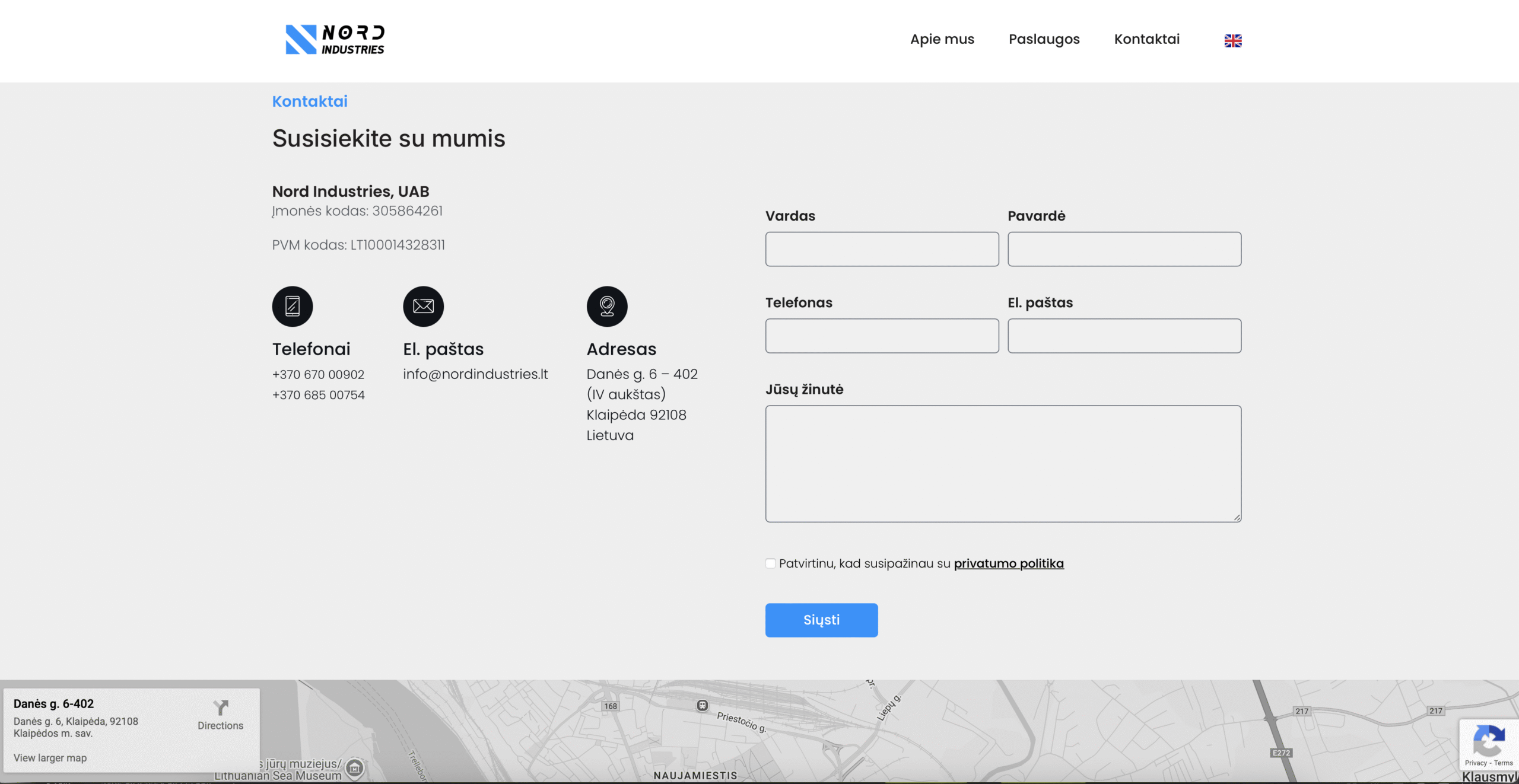 Turite klausimų apie mūsų paslaugas ar kainas? Užpildykite šią kontaktų formą arba susisiekite su mumis žemiau esančiais kontaktais ir mes mielai Jus pakonsultuosime. Atsakysime Jums kaip įmanoma greičiau, 24 valandų bėgyje.